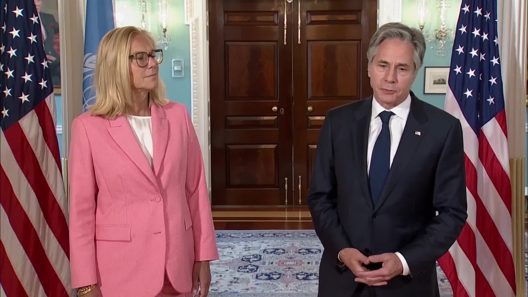 Secretary of State Antony Blinken with UN Senior Humanitarian and Reconstruction Coordinator Sigrid Kaag 6/27/24