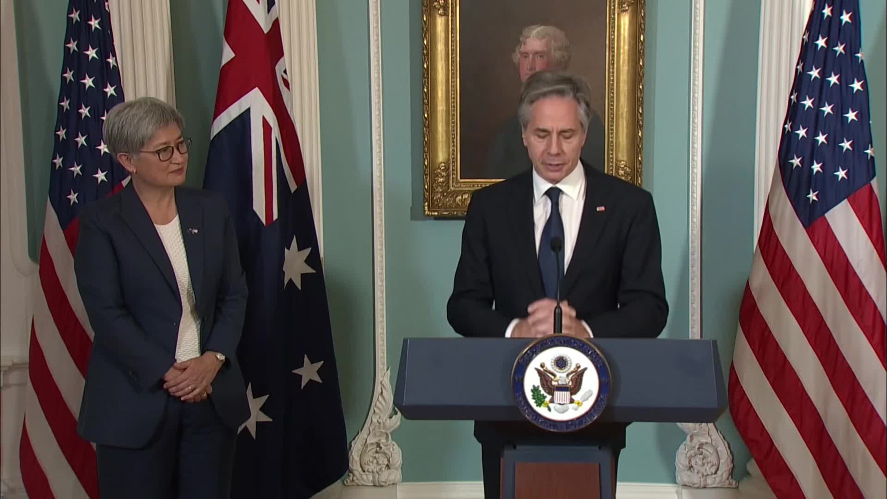 Secretary of State Antony Blinken participates in a signing ceremony for a memorandum of understanding on Countering Foreign State Information Manipulation 8/5/24